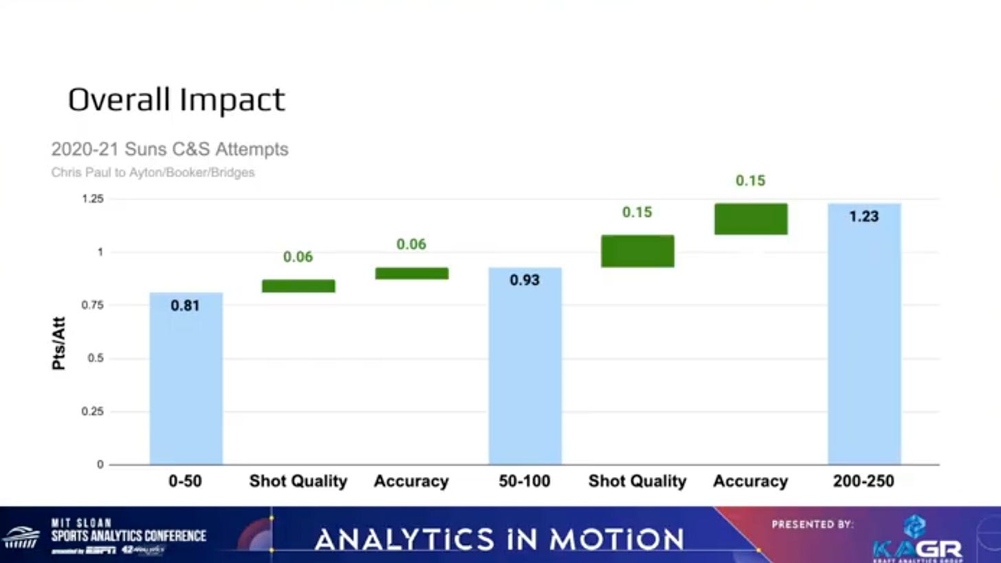 That chemistry is still not captured in existing shot quality models, but it clearly shows up in the results. And one can imagine that if chemistry translates to shot quality, a similar effect can be expected on the defensive end, where understanding teammates’ tendencies, communication, and trust in executing complex coverages are even more crucial.